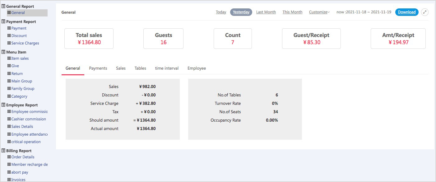 Compop report software allows you to remotely obtain restaurant data and intuitively control store dynamics. Control the management information of all dimensions of the store with one hand.